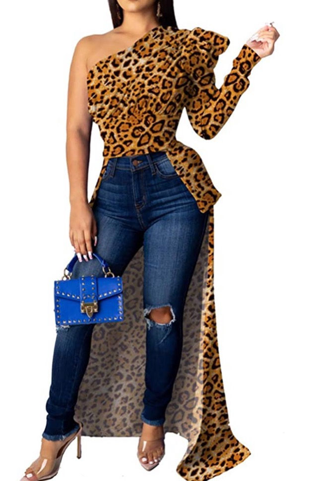 Cheetah Print Off Shoulder Top